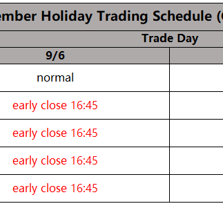 September Holiday Trading Schedule